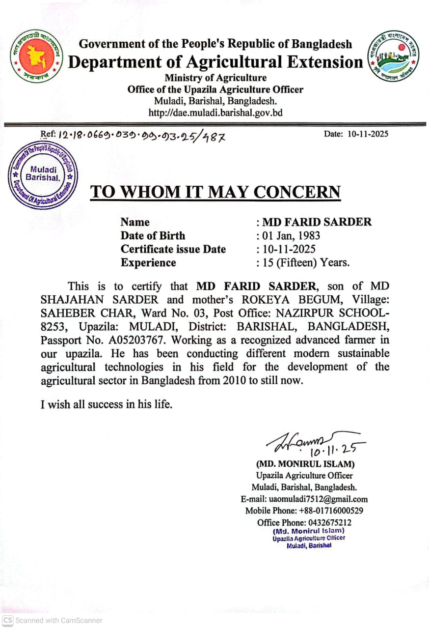 | ৫ | মো: ফরিদ সরদার কৃষি প্রত্যয়ণ ২৫.৪৮৭ | | ১২-১১-২০২৫ | দেখুন | |
