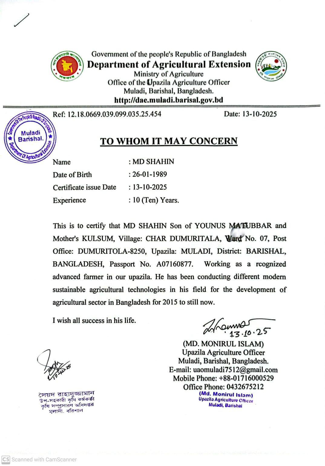 | ৬ | মো: শাহিন কৃষি প্রত্যয়ণ ২৫/৪৫৪ | | ১৫-১০-২০২৫ | দেখুন |